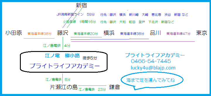 | セッション後 ゆとりがあるときはぜひ江ノ電で観光を楽しんでください♪ 海沿いを電車で走るのは何とも気持ちが良いですよ♪ ![]() ![]() 初めての方はコチラで待ち合わせ |